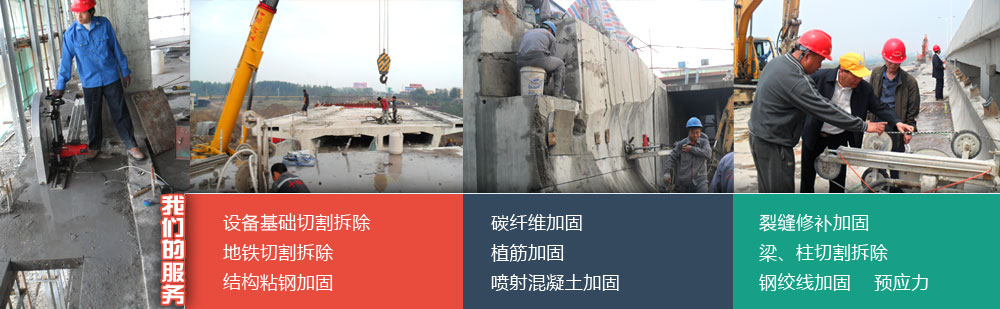 擁有自行研發(fā)生產(chǎn)的專業(yè)性混凝土切割機(jī)設(shè)備:液壓繩鋸機(jī)8臺、液壓墻鋸機(jī)4臺、液壓鉆孔機(jī)10臺,電動鉆孔機(jī)20臺